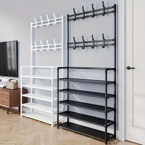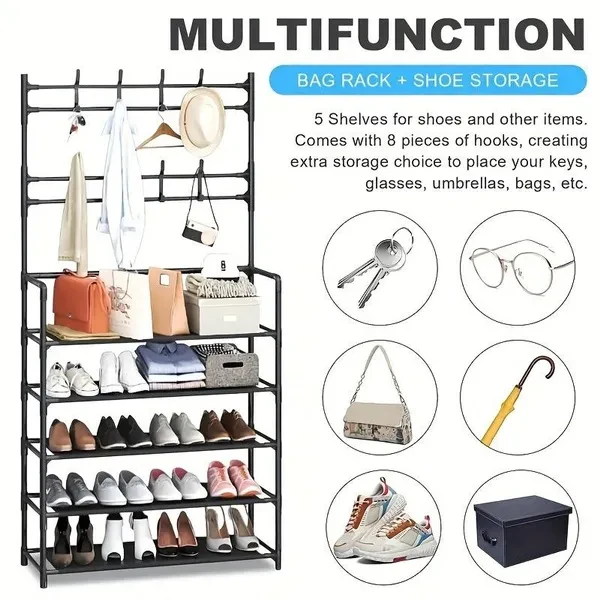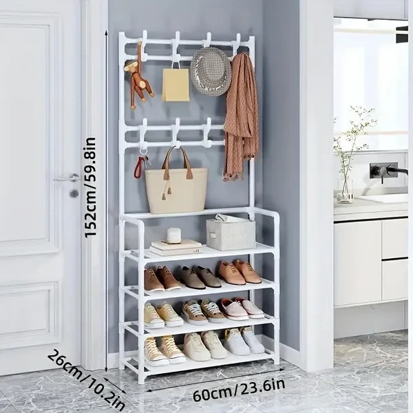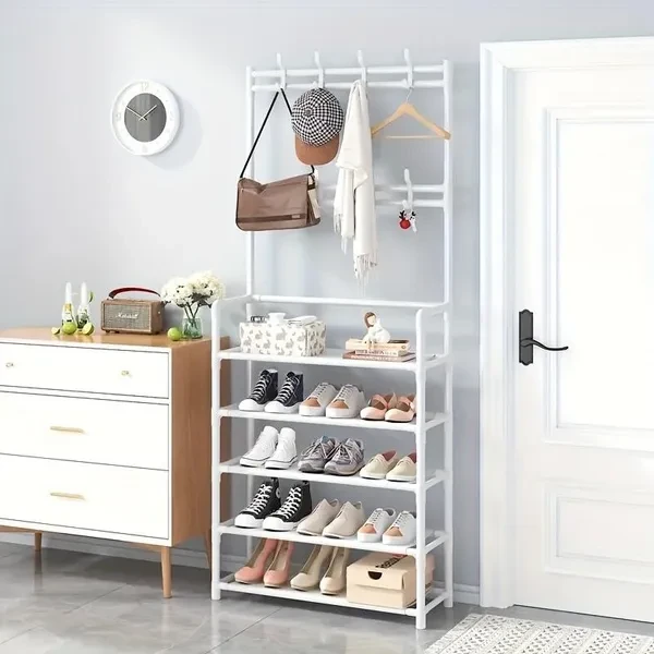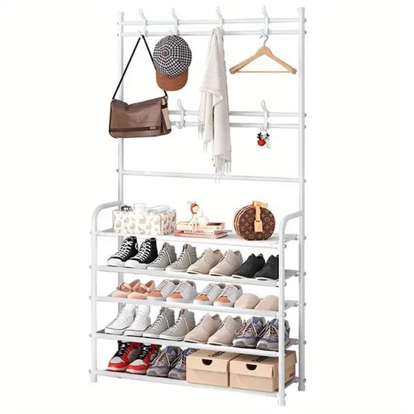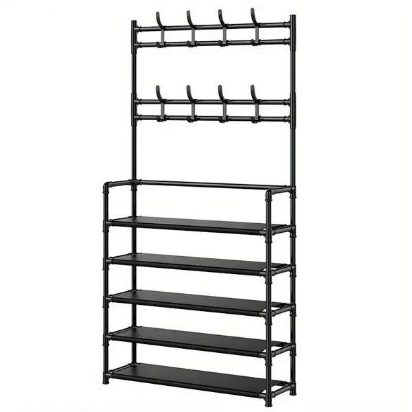 1 pc Elegant Multi-Tier Coat & Shoe Organizer 5 Shelves, 8 Hooks - Maximize Space in Entryways, Living Rooms