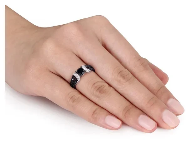 1.00 Carat (ctw) Black & White Diamond Engagement Ring in Sterling Silver
