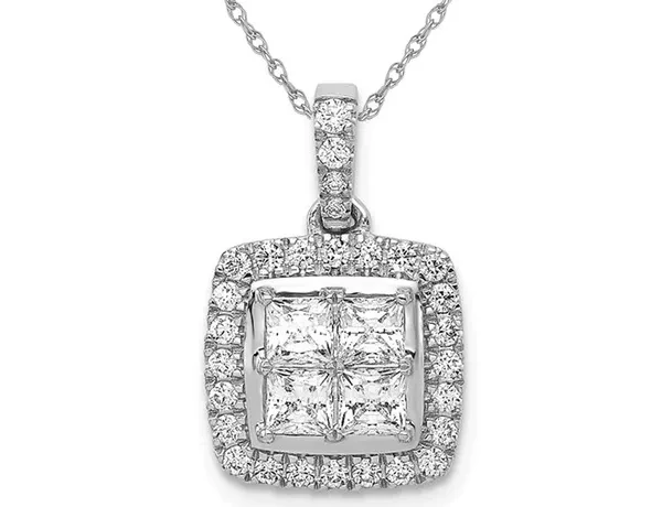 1.00 Carat (ctw I2-I3) Princess Cut Diamond Pendant Necklace in 14K White Gold with Chain