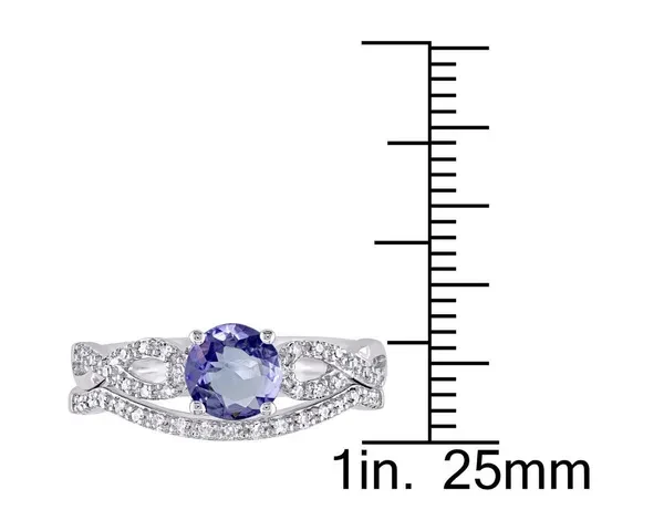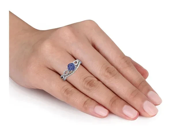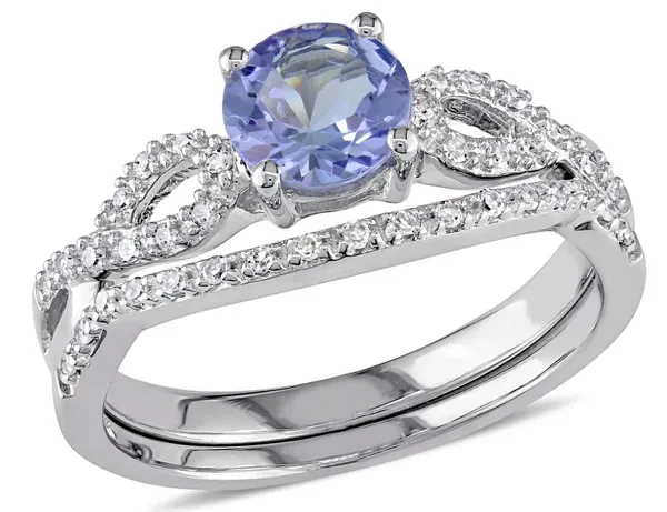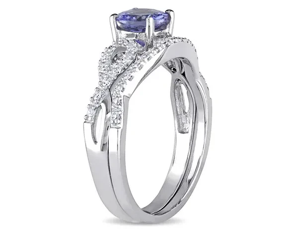 1.00 Carat (ctw) Tanzanite Engagement Ring & Wedding Band in 10K White Gold with Diamonds