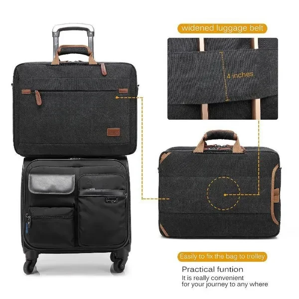 Size: 16.5 x 5.1 x 12.8 inches; Fits up to 15.6 inches laptop. Size: 17.3 x 5.1 x 13.8 inches; Fits up to 17.3 inches laptop. Three carrying styles. You could use it as backpack shoulder bag and messenger bag. Also the straps can be hidden when you use it a messenger bag and shoulder bag. With the exclusive Oxford cloth the laptop bag provides waterproof function and can be more durable and high-end luxuries. Roomy laptop compartment and accessory compartment.Special design laptop compartment with Telescopic belt provides more protection for your laptop. Still keep 3 days clothes for traveling. Roomy enough for your need. Lightweight design is easy for carrying. The top grab handle offers quick grab-and-go style. Ergonomic design ensures the dispersion of gravity of the fulled bag.