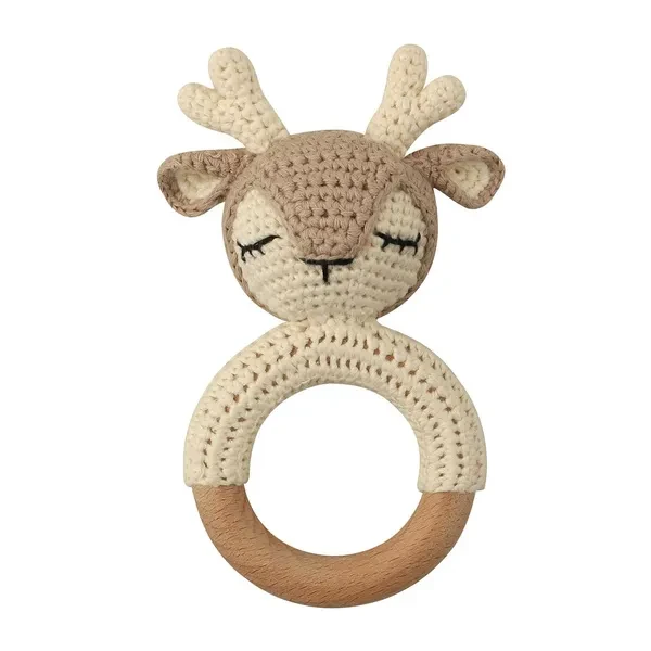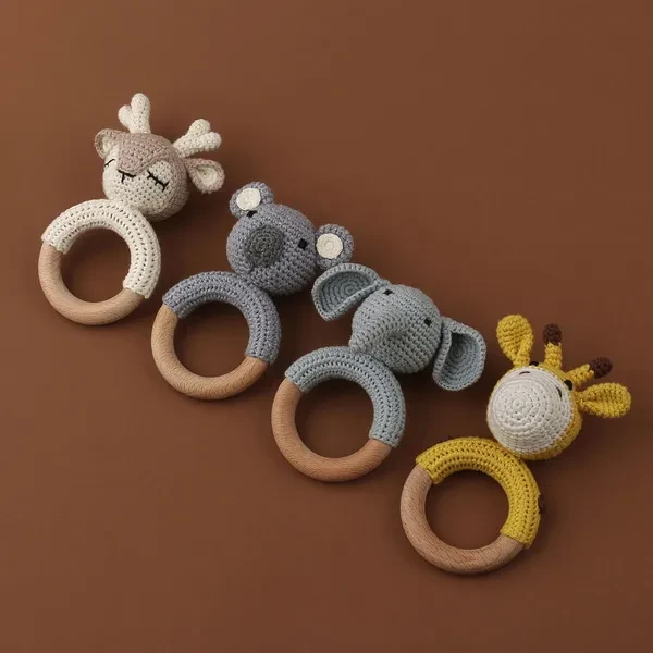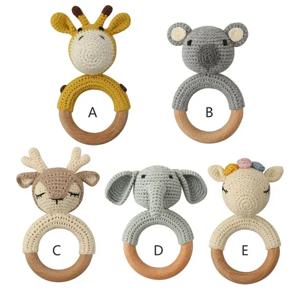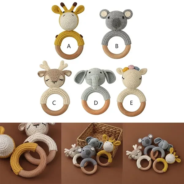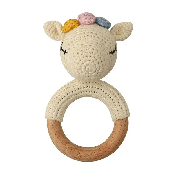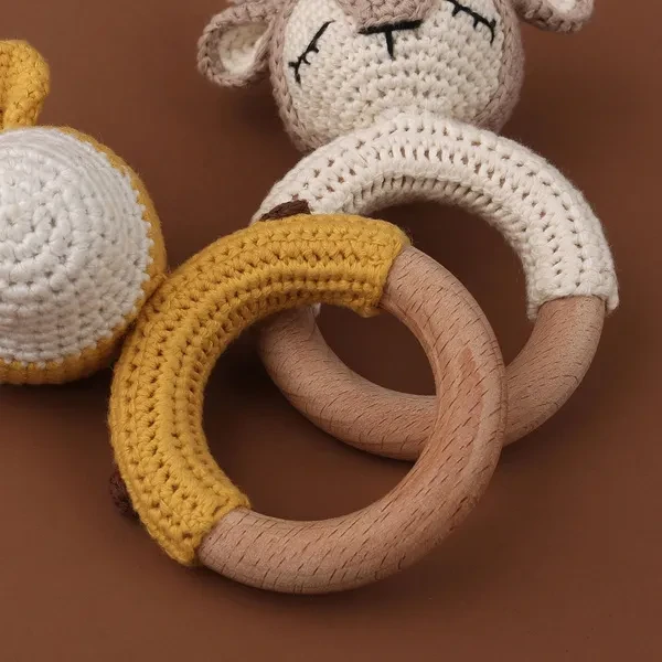 1pc Baby Teether Safe Wooden Toys Mobile Pram Crib Ring DIY Crochet Rattle Soother Teether Baby Product SUM