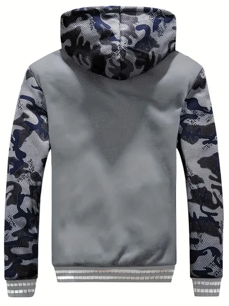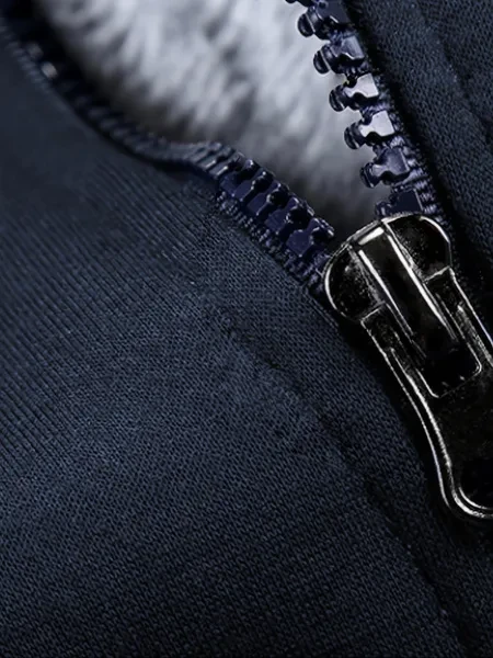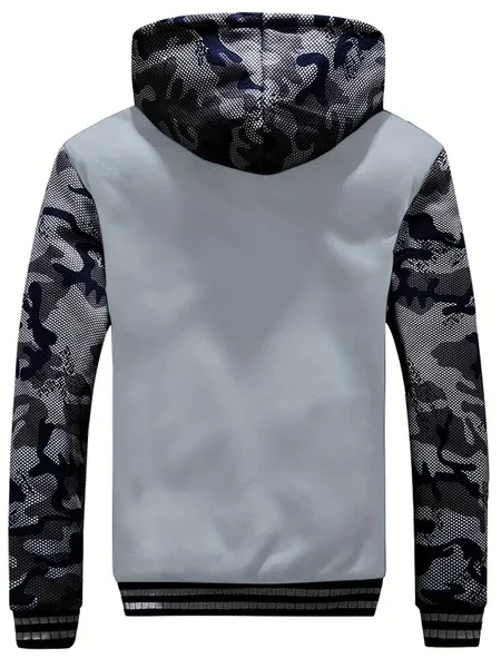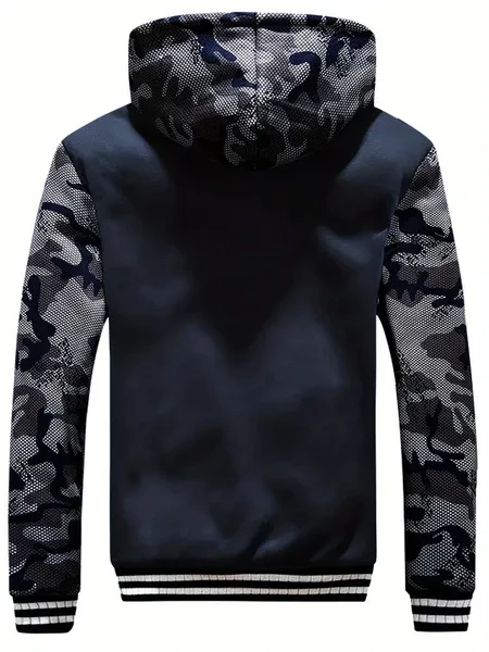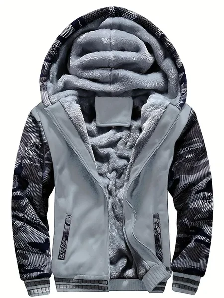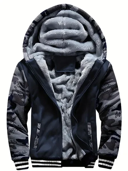 1pc Men'S Winter Casual Fleece-Lined Jacket with Hood - Solid Color Polyester Knit Fabric, Regular Fit, Slight Stretch, Pocket Details - Thickened Warm Outerwear for 2024