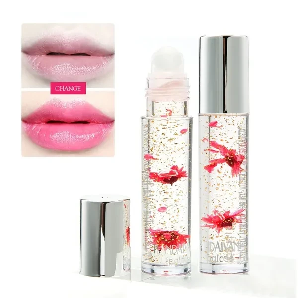 1pcs Flower Temperature Color Change Lip Gloss Crystal Transparent Moisturizing Lip Oil Lipstick
