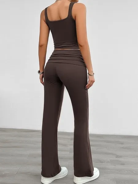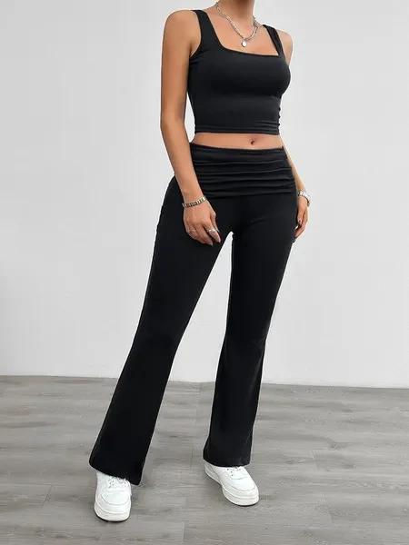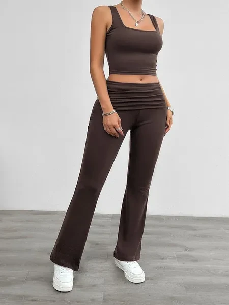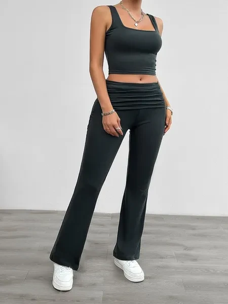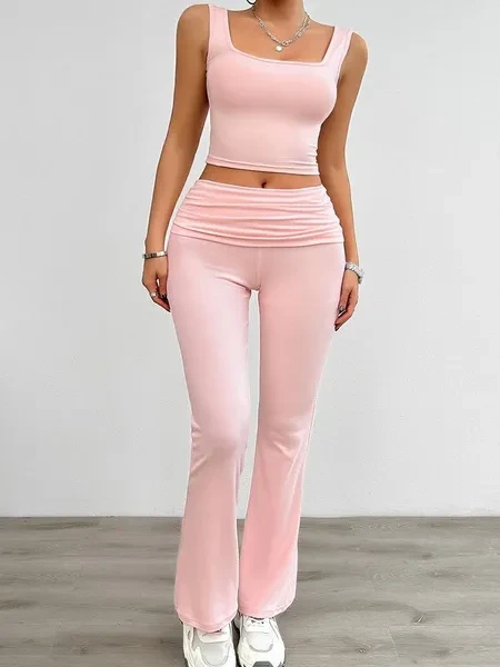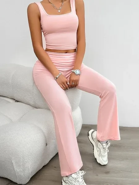 2 Piece Knit Tracksuit Outfits For Women Solid Color Casual Vest And Slim Long Pants Matching Lounge Sets
