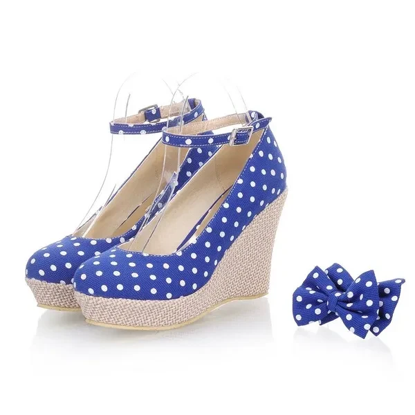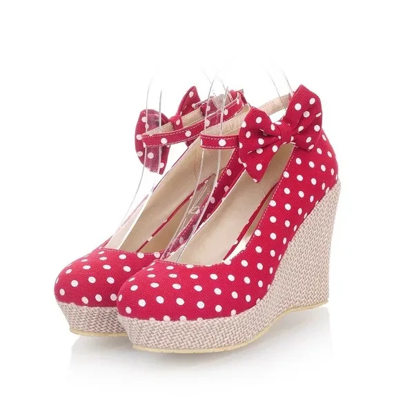 2020 cute sweet bow polka dot Fashion women's Shoes wedges High Heels spring Party date pumps Shoes Woman