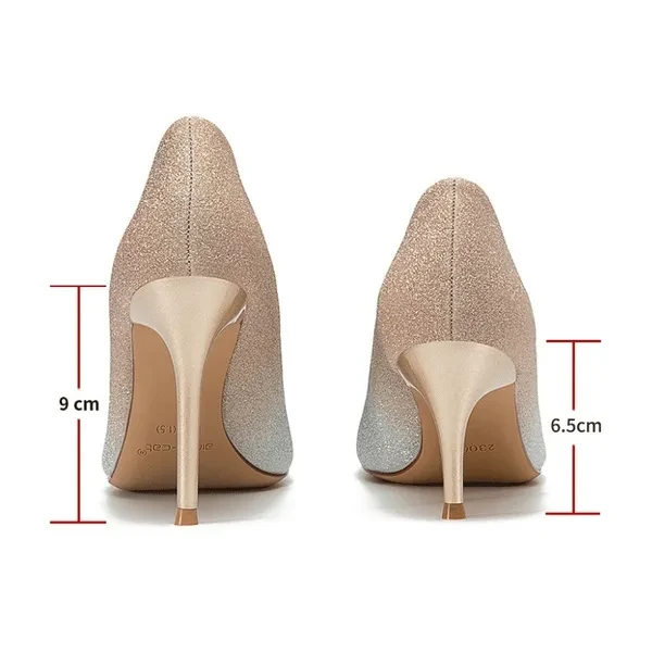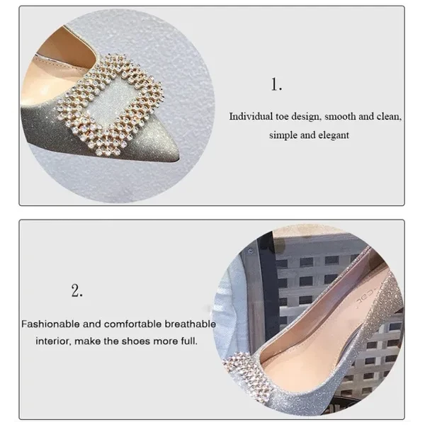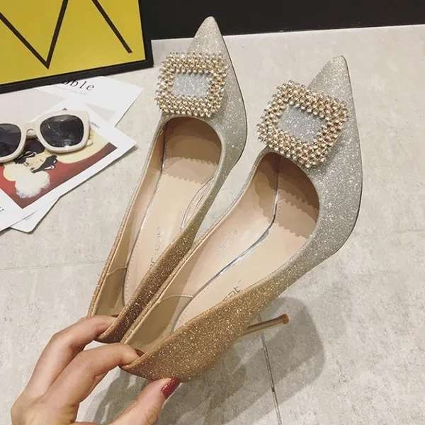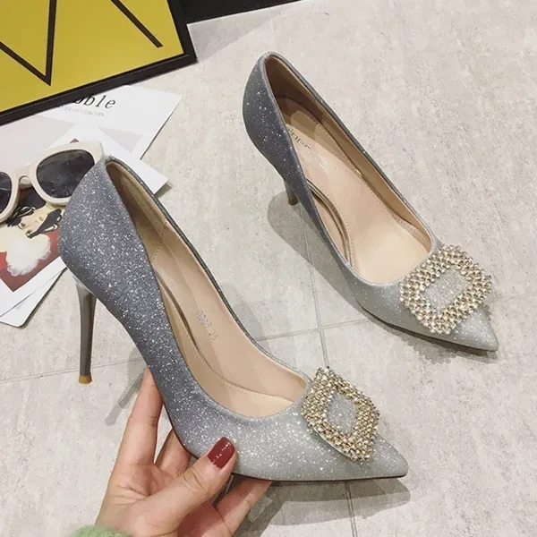 2020 NEW Fashion Gradient Color Rhinestone Snowflake Buckle High Heels Pointed Toe Stiletto Pumps Single Shoes Banquet Wedding Shoes