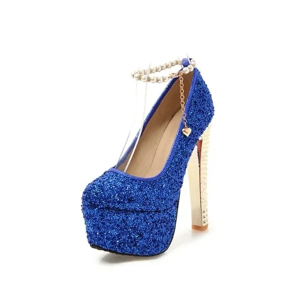 2020 Women High Heels Glitter Sequined Bride Wedding Party Valentine Shoes Red Blue Green Beading Strap Platform Pumps