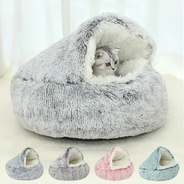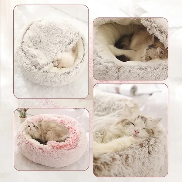 2022 Winter Long Plush Pet Cat Bed Round Cat Cushion Cat House Warm Cat Basket Cat Sleep Bag Cat Nest Kennel For Small Dog Cat