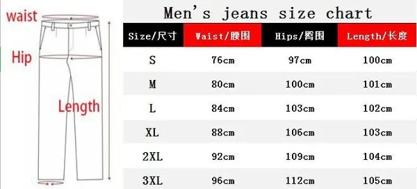 Welcome to our store Pants cuff style: small feet Process: hand-worn Color: dark blue, black Size:S,M,L,XL,XXL,XXXL Waist type: mid-waist Pants type: tight Elasticity: Shot Style Details: Multi-pocket Trousers placket: zipper placket Suitable for the season: Four seasons Fabric: Denim Package includes: 1*Jeans Because of manual measurement, please allow 1-3 cm error