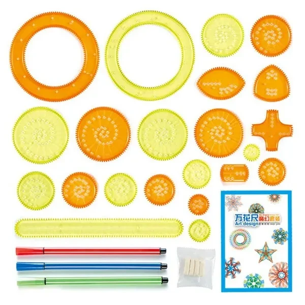 27Pcs Spirograph Drawing Toys Set Interlocking Gears Wheels with Pens Spiral Designs Painting Accessories Stationery Toy