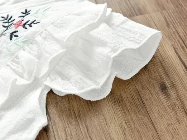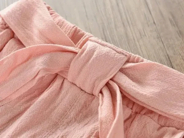 2Pcs Children Clothing Set Little Kids Girls Sleeveless Embroidery Shirt + Bowkont Shorts Baby Girl Outfits