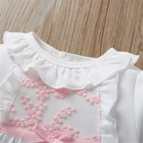 2PCS Newborn Baby Girl 3D Flower Romper Bodysuit Jumpsuit Hat Outfit Clothes