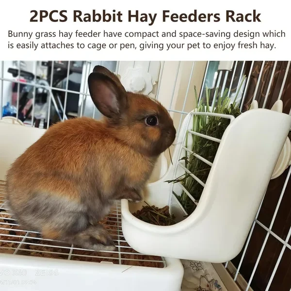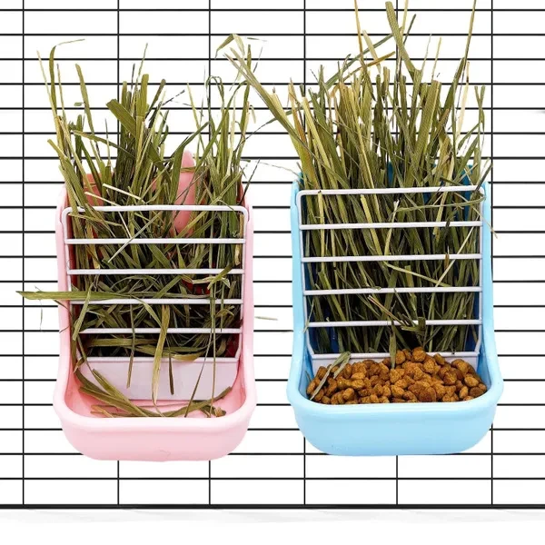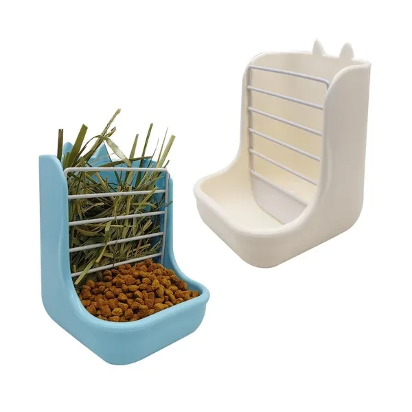 2PCS Rabbit Hay Feeders Rack 2 in 1 Feeder Bowls Double Bunny Feed Holder Grass Food Supplies for Chinchillas Guinea Pig Hamsters