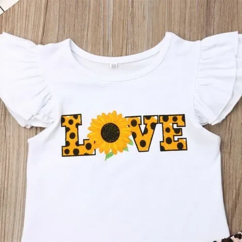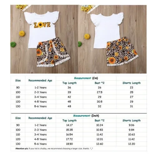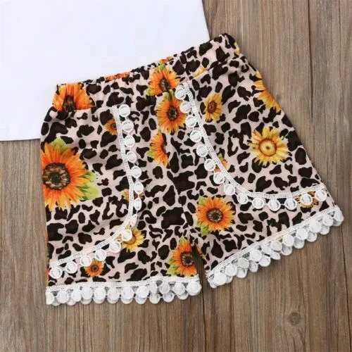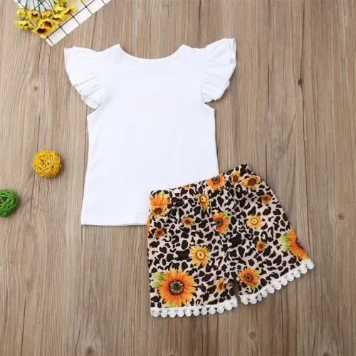 2PCS Toddler Kids Baby Girl Sunflower Shirt+Shorts Pants Clothes Outfit