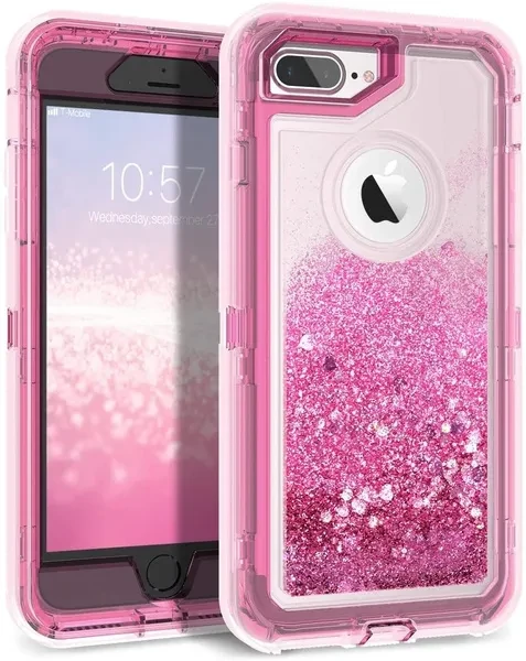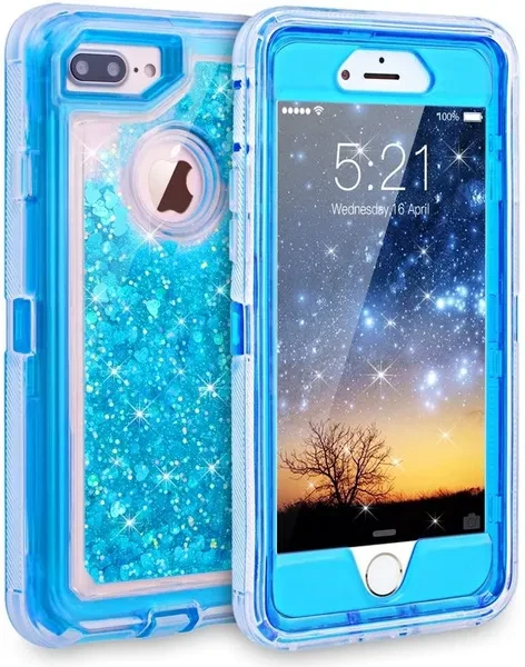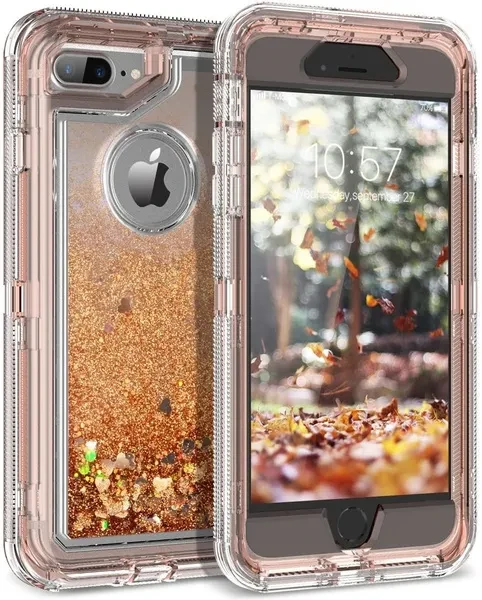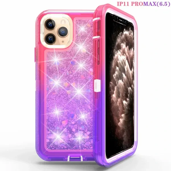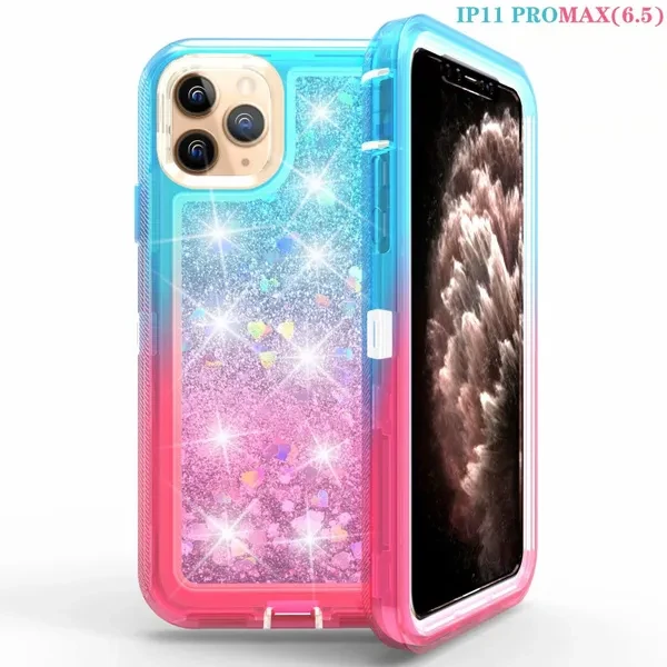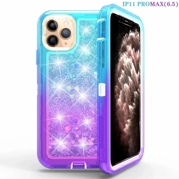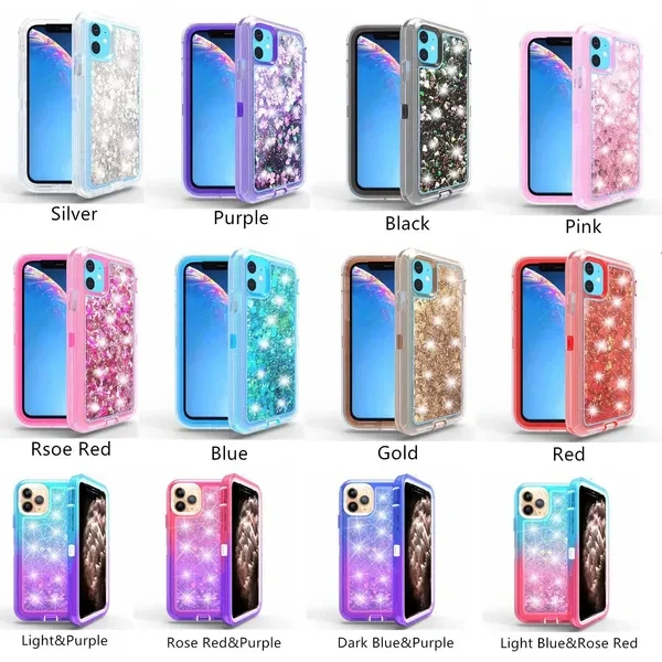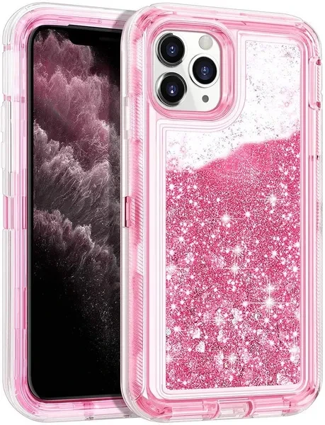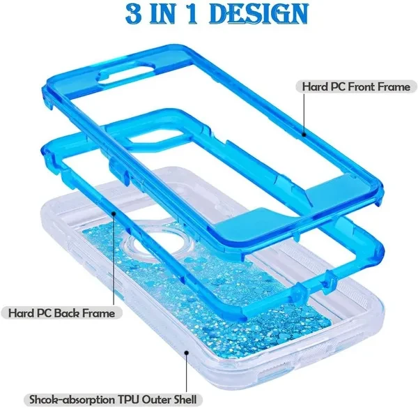 3 in 1 Hybrid Heavy Duty Defender Case Sparkly Floating Liquid Glitter Protective Hard Shell Shockproof TPU Cover for iPhone 6/7/8/6 Plus/6S Plus/7 Plus/8 Plus/X/XS/XR/XS Max/11/11 Pro/11 Pro
