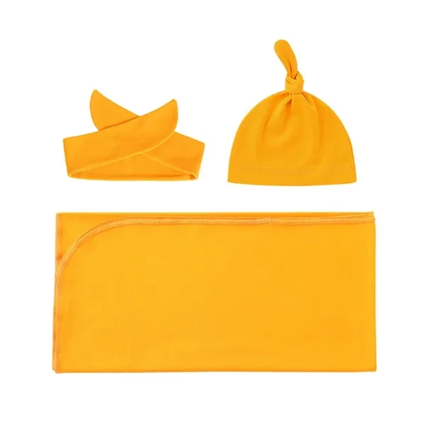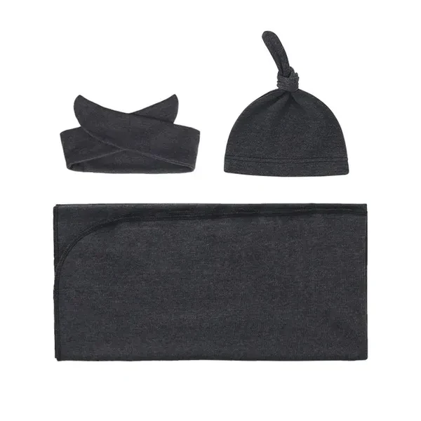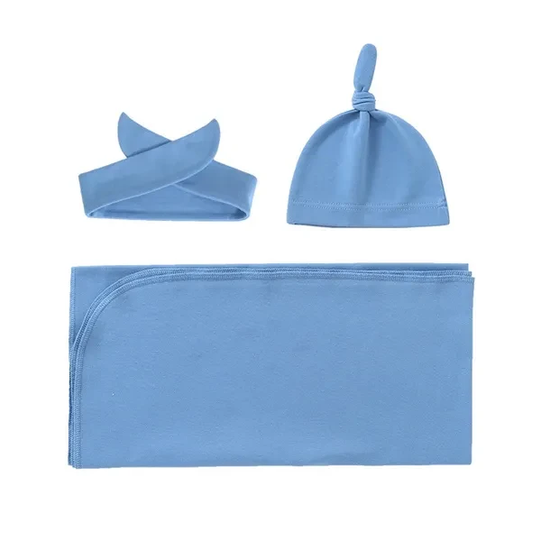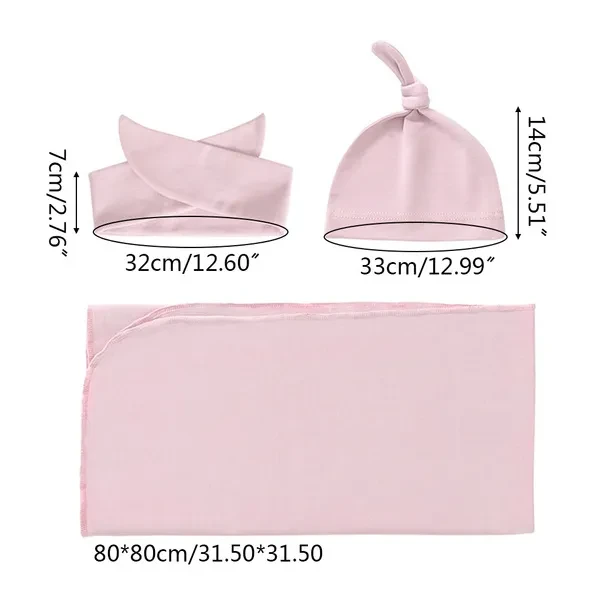 3 Pcs Newborn Swaddling Wrap + Headband + Hat Set Baby Cotton Receiving Blanket Sleepsack Hair Band Cap Kit for Infants Boys Girls Shower Gifts PHO