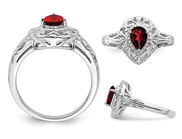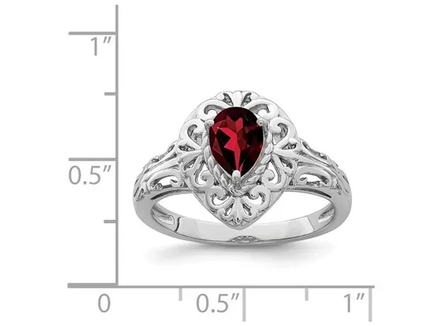 3/4 Carat (ctw) Teardrop Garnet Ring in Sterling Silver A pear shaped garnet gemstone is the centerpiece of this simple and elegant sterling silver ring. Beautifully crafted in rhodium plated 0.925 sterling silver with a Rhodium plating Finish Stone Type: Garnet; Color: Red; 0.73 CTW; Quantity: 1; Heart Cut; Heart Shape; Natural; Prong Setting This item ships directly from the USA. If you are not completely satisfied, simply return for a 100% refund Garnet Gemstone is the Birthstone for the Month of January This Ring is the perfect gift for any birthday, anniversary, holidays, thank you, thinking of you, or for any reason at all SKU: 68QGG4515GA-P