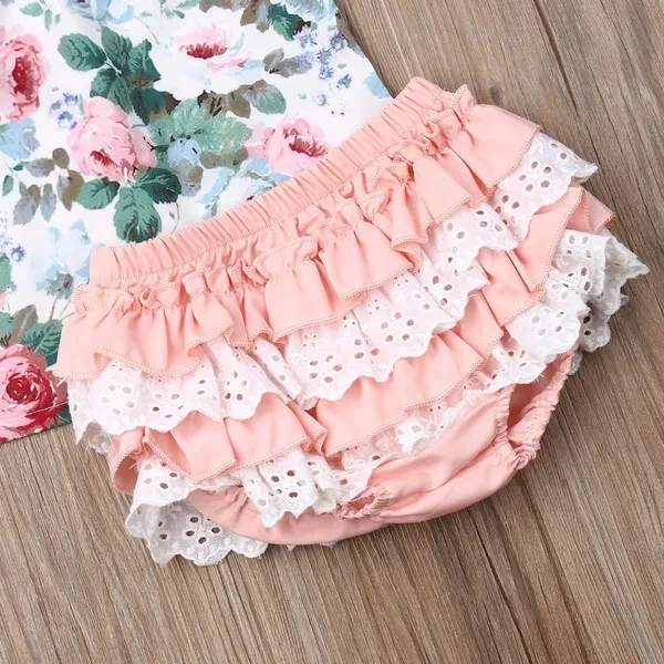 Newest Fashion Kids Baby Girls Flower Outfits!!! High quality and Brand new 100% Main Color: As The Picture Show New in Fashion Material: Cotton Blend Package included: 1x Tops +1x Shorts+1x Headband Size Chart:(cm) Size Age Tops Bust*2 Waist*2 Shorts 70 3-6 M 26 23.5 18 17 80 6-12 M 28 24.5 19 18 90 1-2 Y 30 25.5 20 19 100 2-3 Y 32 26.5 21 20 There is 2-3% difference according to manual measurement. please check the measurement chart carefully before you buy the item. 1 inch = 2.54 cm Please note that slight color difference should be acceptable due to the light and screen.