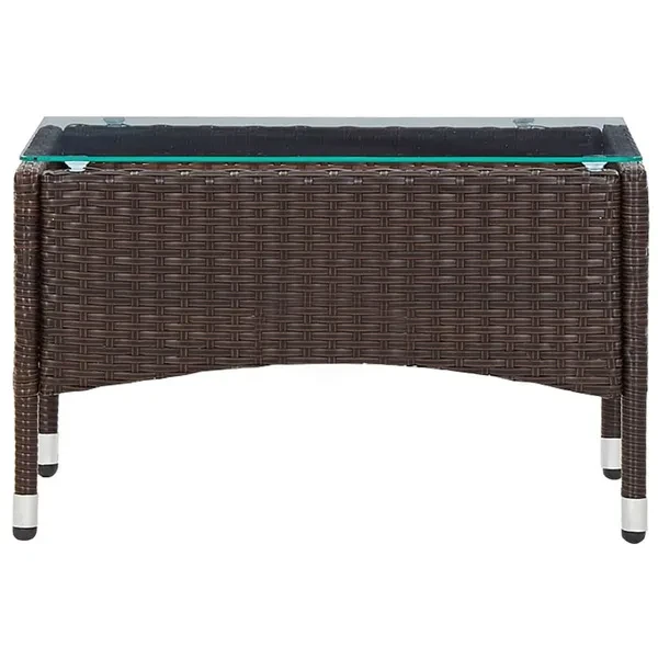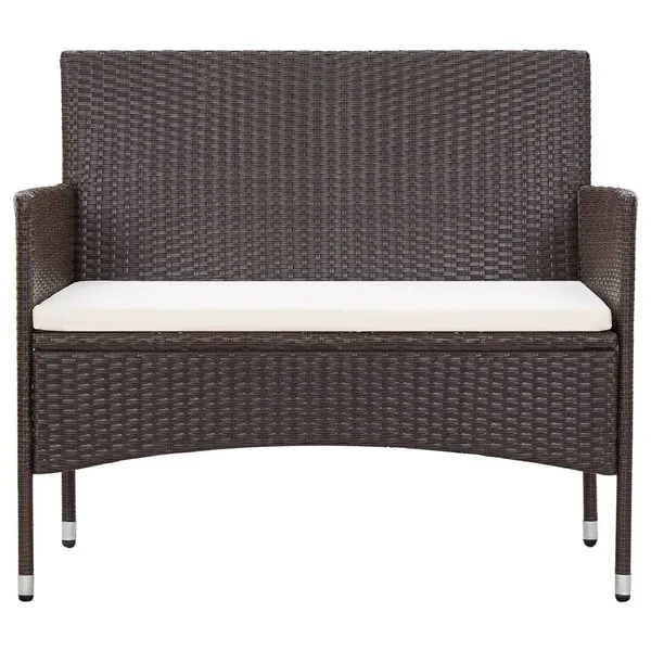 This garden sofa set made of PE rattan is a great addition to your outdoor area. With its straight, stylish design, it gives your garden, balcony or terrace a touch of modern elegance. Made from weather-resistant PE rattan, this lounge set is easy to clean, hard-wearing and ideal for everyday use. The powder-coated steel frames give the sofa, chairs and table robustness and durability. Thanks to the lightweight construction, the furniture can be easily moved. The thickly padded cushions also provide additional comfort. Their covers can be easily removed and washed. This garden lounge set is easy to assemble. Note: We recommend covering the set in rain, snow and frost. Color: brown and creamy white (cushion) Material: PE rattan, steel, frosted glass Upholstery material: 100% polyester Sofa dimensions: 103 x 58 x 81 cm (W x D x H) Armchair dimensions: 59 x 58 x 81 cm (W x D x H) Table dimensions: 60 x 40 x 36 cm (L x W x H) Glass thickness: 5 mm Seat cushion thickness: 4 cm Removable, washable cushion covers Assembly required: Yes Delivery includes: 1 x 2-seater sofa 2 x armchairs 1 x coffee table 3 x seat cushions