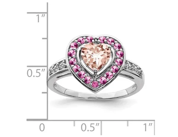 4/5 Carat (ctw) Morganite Heart Ring in Rhodium Plated Sterling Silver