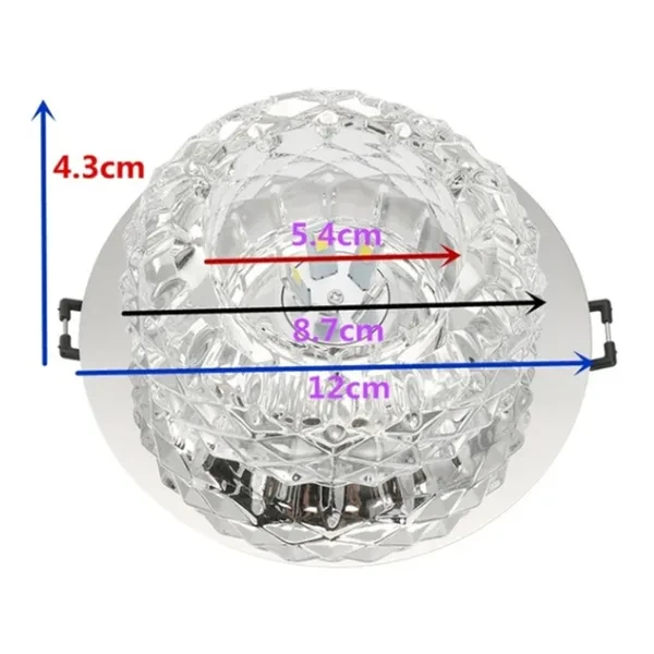 Bullet Point: No need to punch the installation, easy to install. High-quality crystal lampshade, aesthetic design, 360° sparkling light, high heat dissipation, guarantee electronic components. Constant current driver, built-in intelligent IC driver, placing voltage fluctuations to affect the lamp, extending the service life. Electroplating hardware chassis, metal plating process, not easy to rust deformation, strong endurance. Suitable for conference rooms, shops, supermarkets, exhibitions, dance halls, bars, kitchens, living rooms, bedroom use and other lighting and decoration. Specifications: Size: diameter 120mm/4.72inch, height 30mm/1.18inch (Approx.) Material: glass + stainless steel Color: warm white / white light Process: drilling, polishing Light source: LED5W Package Included: 1 x Modern Crystal LED Ceiling Light
