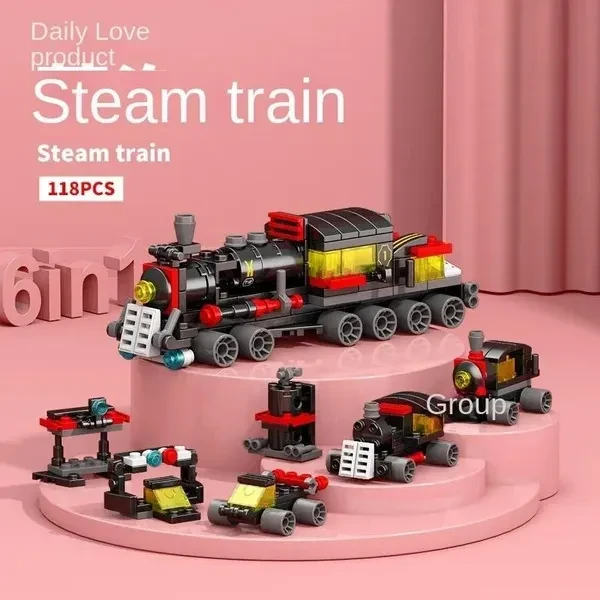 6in1 City Warship Tank Excavator Mortar Train Helicopter Model Building Blocks Bricks Sets Classic Kids Toys For Children