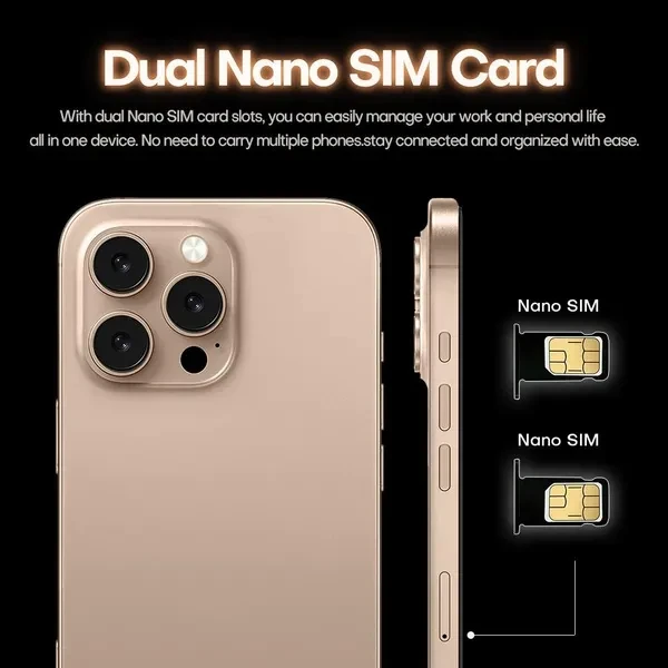 Factory direct sales, better quality but lower price is our target and mission! Feature: - 7.3inch FHD Display The i16proMax delivers the viewing experience you always wanted, With a massive 93% screen-to-body ratio on a 7.3"inch screen. - 50MP Front Camera Clear and Stylish Selfie The i16proMax world-leading 50MP front camera turns your every selfie into a work of art experience greater brightness, color vibrancy, clarity and dynamic range. Even in the dimmest light, whenever you need it, your i16proMax is right there with you, capturing every moment with crystal-clear precision, Turn your selfies into masterpieces and shine in every photo. - 108MP Rear HD camera The i16proMax features a 108MP camera combination. The main camera sports a large f/1.8 aperture and 1.28um pixels, This strong combination boosts photo-sensitivity in backlight or low light, Just point and shoot, and i16proMax will make sure your pictures remain clear and bright. - Face Access The i16proMax also supports facial recognition upon activation,i16proMax scans your facial features and unlocks instantaneously accessing your phone has never been so easy, or so fun. - Powerful Performance The Snapdragon 8 gen2 mobile platform with 10mm process technology makes young people who love the young and other popular games. The game is on and lower. - Android 14.0 The new interactive design makes the operation simple and simple, the use of the mobile phone is so simple and straightforward, everything is handy. - Dual SIM card supports TF card Dual card dual standby, card slot does not distinguish between the main and the deputy, supporting the worlds 50 major communication carrier networks -Camera Button Camera Control gives you an easier way to quickly access camera tools. A high-precision force sensor with haptic feedback emulates the feel of a DSLR camera shutter. Recognizes precise interactions like clicks and slides. Specification: 1.Model No.:i16proMax 2.Platform : Snapdragon 8 gen3, Deca Core (Latest 10 Core) 3.Standby: Dual sim dual standby 4.Screen: 7.3HD+ Full Display 1440*3200 5.Speaker: 1511 Box Speaker 6.Frequency: GSM850/900/1800/1900MHz, 3G:WCDMA850/1700/1900/2100MHz *4G:TDD(B38\B40\B41),FDD (B1\2\3\4\5\7\8\20\28A\28B) *5G 7.Vibration: Support 8.Colors: Desert Titanium,Black Titanium,White Titanium,Natural Titanium 9.Memory: 16GB RAM+1TB ROM 10.Multi Media: MP3/MP4/3GP/FM Radio/Bluetooth 11.Camera: 50MP+108MP 12.Multi Function: Full screen, Face recognition, Dual SIM,2.4&5G Wi-Fi, GPS,Gravity Sensor, Alarm ,Calendar ,Calculator ,Audio recorder ,Video recorder, WAP/MMS/GPRS, Image viewer,E-Book,World clock,Tasks card, rear flash 13.Languages: Muti-language support 14.Others: Android OS 14.0 System 15.Battery: 8000mAh Lithium-ion battery 16.Ultra unibody 17.TypeC input Package Included: 1 x Smartphone, 1 x Charger Adapter, 1 x Headphones, 1 x User Manual, 1 x phone case, 1 x Protection film Attention: *In terms of memory and capacity, the actual available capacity will be reduced and different due to many factors: because the operating system occupies part of the memory (RAM), the actual available space is less than the marked memory capacity; due to the installation of the operating system and pre-installed programs occupy part of the flash memory (ROM), and the actual available storage space is less than the indicated flash memory capacity. *The mobile phone support GSM,WCDMA (For example USA  operators:T-mobile,AT&T,Straight Talk,Cricket Wireless,Google Project Fi,Lycamobile,MetroPCS ,MintMobile), whether to support 4G, 5G depends on the local operator networksupport,does not support the Telecom CDMA network. (For example USA  operators:Verizon,Sprint,U.S Cellular,Boost Mobile,FreedomPop,Ting),