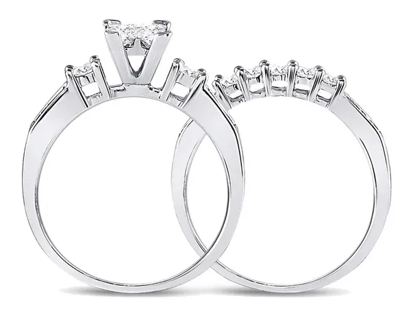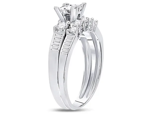 7/8 Carat (Color H-I, I1-I2) Princess Cut Diamond Engagement Ring Bridal Wedding Set in 10K White Gold