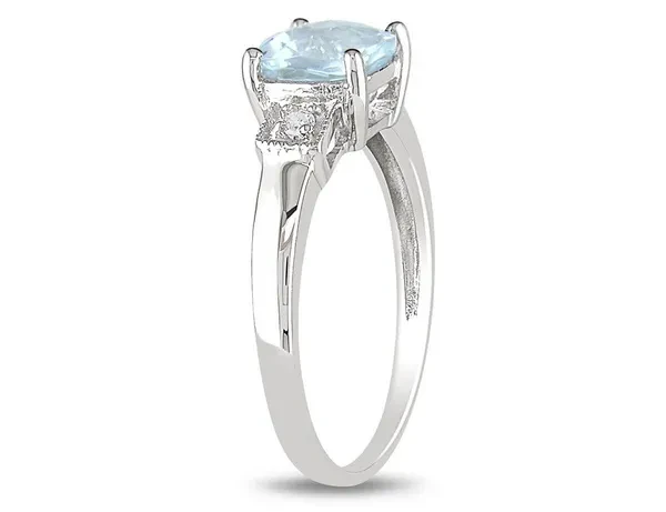 Aquamarine Ring 4/5 Carat (ctw) with Diamonds in Sterling Silver A beautiful square shaped glowing aquamarine .85 Carat (ctw) gemstone sits at the center of this sterling silver ring. Beautifully crafted in 0.925 sterling silver with a Polished Finish Stone Type: Aquamarine; Color: Blue; 0.85 CTW; Quantity: 1; checkerboard-cut Cut; Cushion Shape; Dimensions: 6 x 6 mm; Natural; 4-Prong Setting Stone Type: Diamond; Color: G-H; Clarity: I1-I2; 0.04 CTW; Quantity: 2; Brilliant Cut; Round Shape; Natural; 4-Prong Setting Aquamarine Gemstone is the Birthstone for the Month of March This Diamond Ring is the perfect gift for any birthday, anniversary, holidays, thank you, thinking of you, or for any reason at all SKU: 68DLG9458AQ-P
