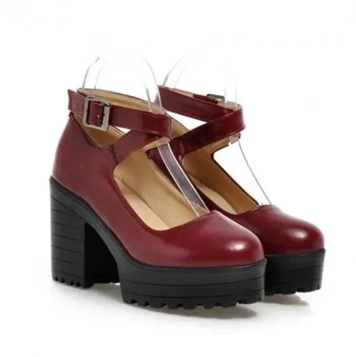 ender:: Women tem Type:: Pumps ccasion:: Party tyle:: punk pper Material:: PU it:: Fits true to size, take your normal size latform Height:: 0-3cm ining Material:: Synthetic eel Height:: Super High (8cm-up) nsole Material:: PU ith Platforms:: Yes losure Type:: Buckle Strap eel Type:: Square heel oe Shape:: Round Toe utsole Material:: Rubber ashion Element:: Cross-tied rand Name:: PXELENA ump Type:: Ankle Strap eason:: Spring/Autumn odel Number:: 7.7 olor:: Black,White,Wine Red ize:: Eur 35-43 eel:: 3.7 inches latform:: 1.6 inches