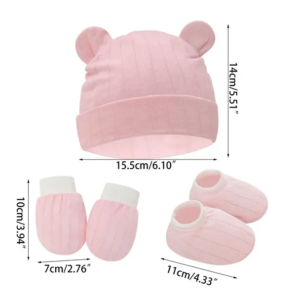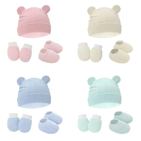 Baby Anti Scratching Gloves Cute Ears Hat Foot Cover Set Soft Cotton Newborn No Scratch Mittens Socks Beanies Cap Night Headwrap Kit for Infants Toddler Shower Gifts ZOU