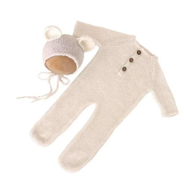 Baby Photo Shooting Props Costume Bear Ear Hat & Footed Jumpsuit Set Newborn Photo Props Infant Photography Outfit 2PCS BAB