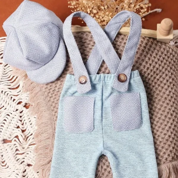 <p>Features: your baby's adorable moments in with this strikingly striped two piece set, featuring a baby suspender pants and a matching duckbill caps for the perfect photo outfit. Crafted from high quality polyester fabric, this set offers comfort with its soft, breathable material that is easy to clean, ensuring your little stays cozy and fuss Designed with adjustable straps and a versatile hat, this comfortably fits newborns aged 0-1 month, growing with your baby during those early weeks. For daily wear, special photo or celebratory event, this baby suspender and caps set will make your infant the center of attention with its fashionable and endearing appeal. The convenient pockets add a practical touch to the trendy making it not only a photogenic outfit but also a functional choice for parents who cherish both and utility for their babies. Specifications: Material: Polyester Pants Length: About. 30cm/11.81in(for Baby 0-1 Month) Color: Blue/Light Green Package Includes: 1pc Hat 1pc Romper note: Please allow 1-2cm errors due to manual measurement. Due to difference between different monitors, the picture may not reflect the item actual color. </p>