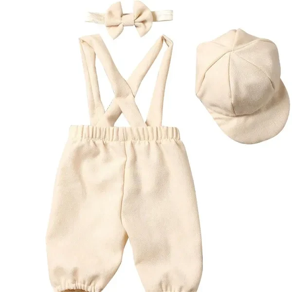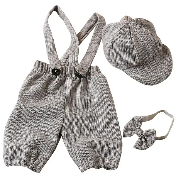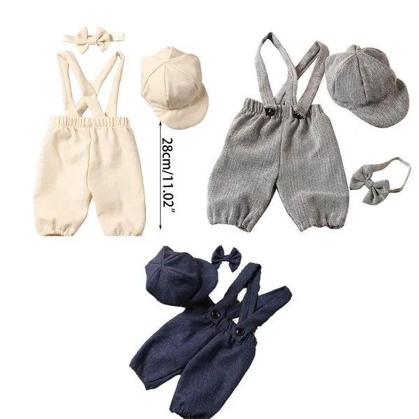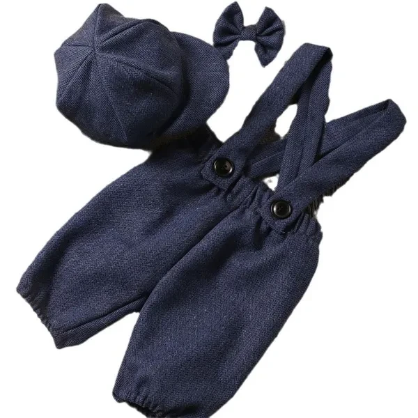 Baby Photography Props Gentleman Uniform Peaked Cap Overalls Photo Outfit Newborns Photo Clothes Infant Posing Suit 3Pcs XUF