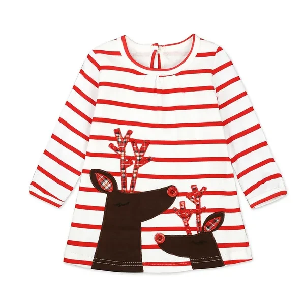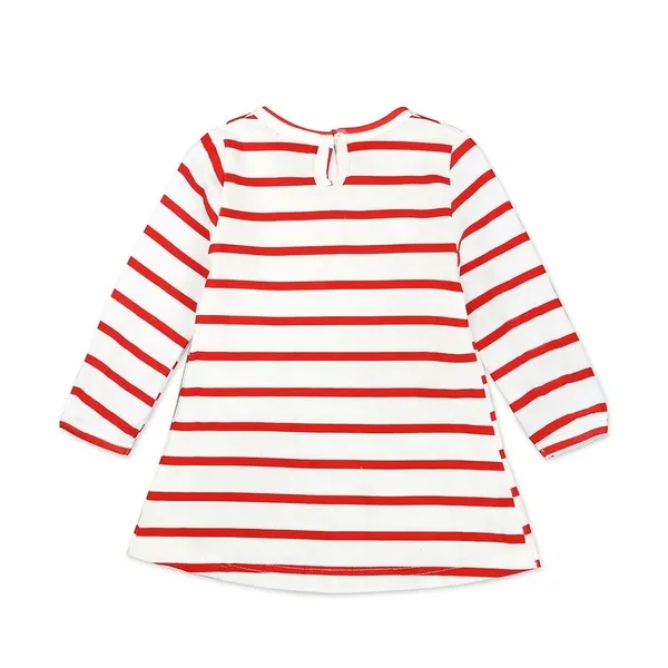 Baby Toddler Girls Christmas Reindeer Printed Long Sleeve Red&White Stripe Dress Clothes for 1-6T