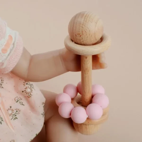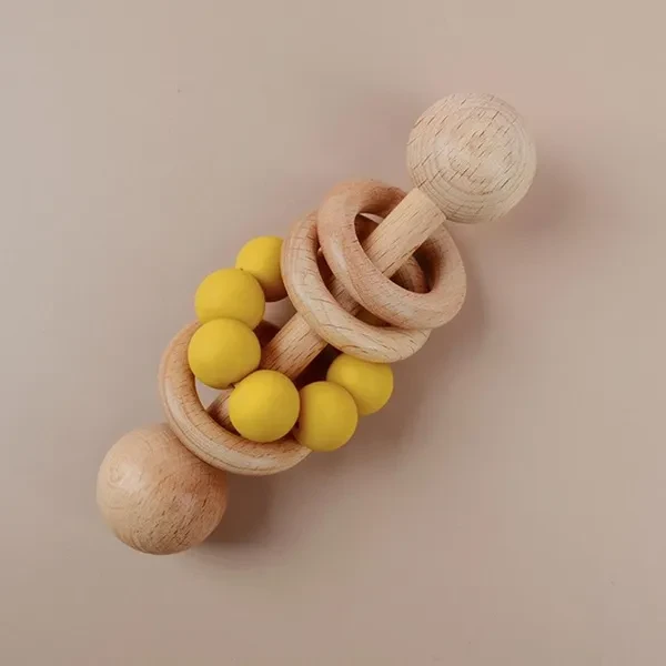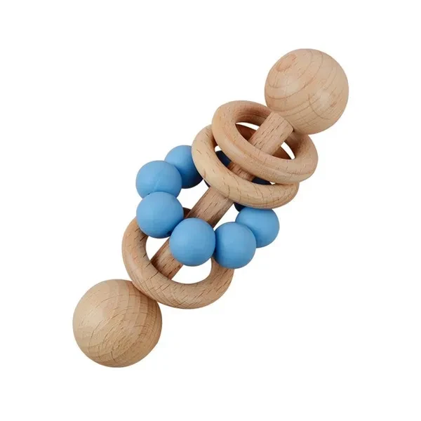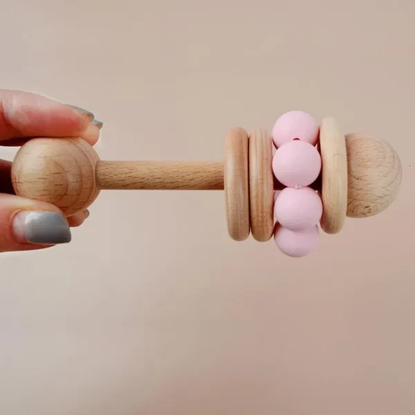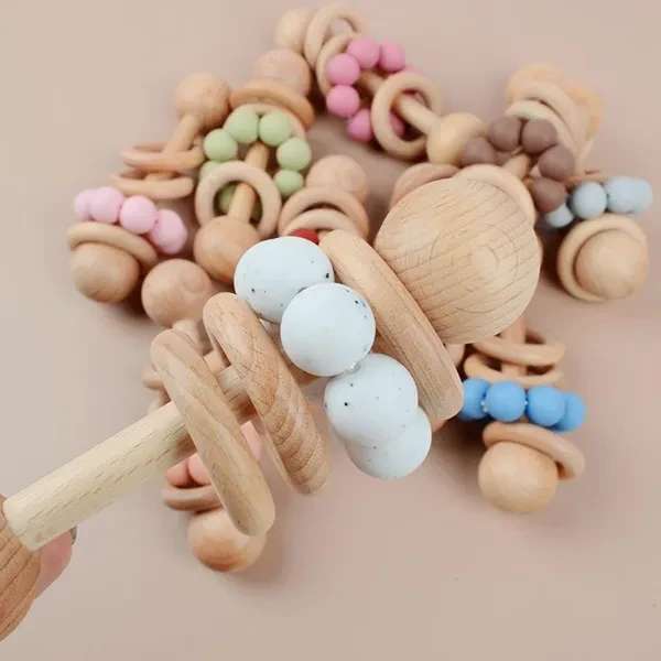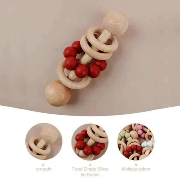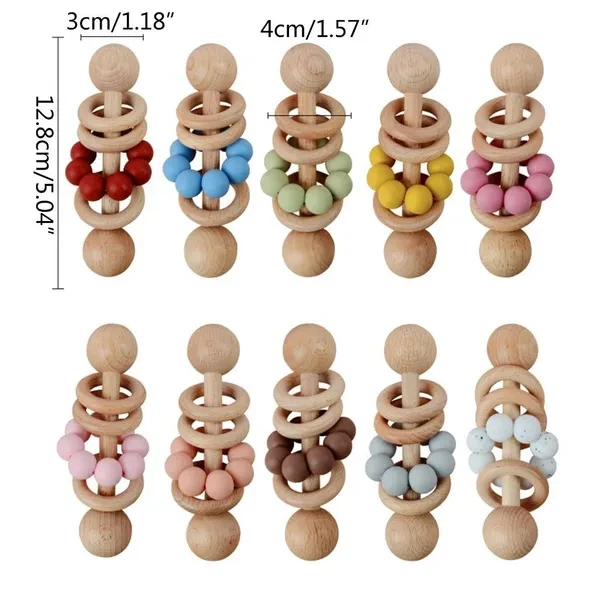 Baby Wooden Rattle Grip Toy Baby Teething Toy Hand Bells Toy for Hearing Sensory Stimulation Nursing Gift ZHE