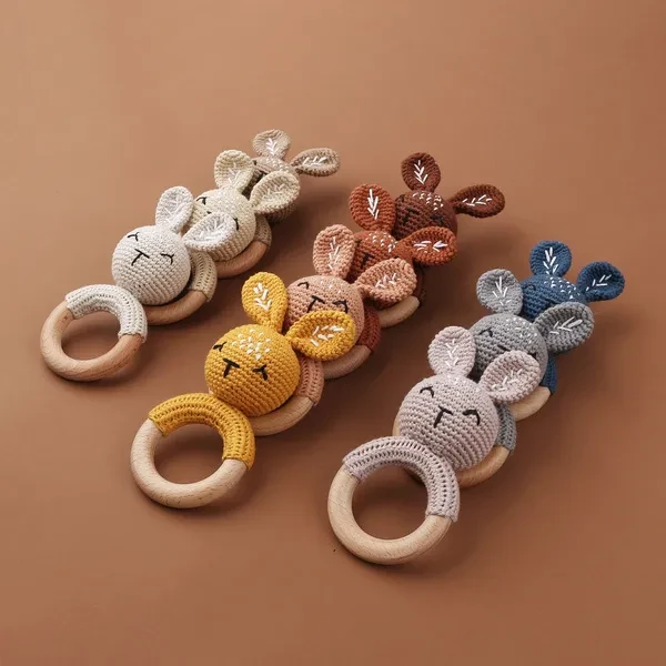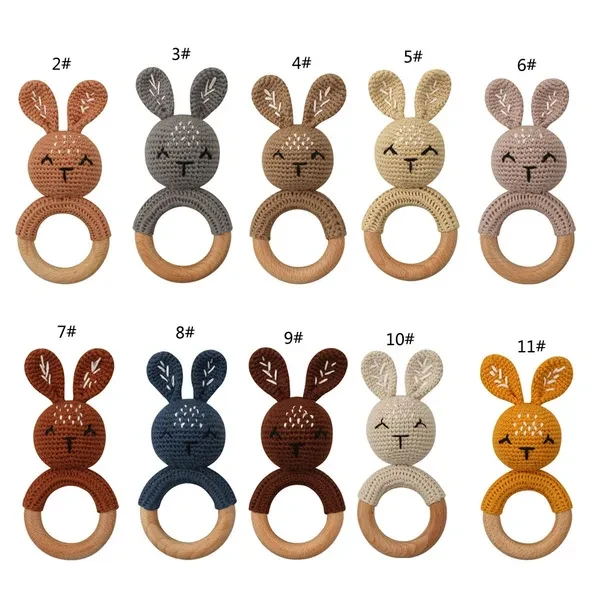 Baby Wooden Teether Crochet Rattle Toy BPA Free Wood Rodent Rattle Baby Mobile Gym Newborn Stroller Educational Toys ZOU