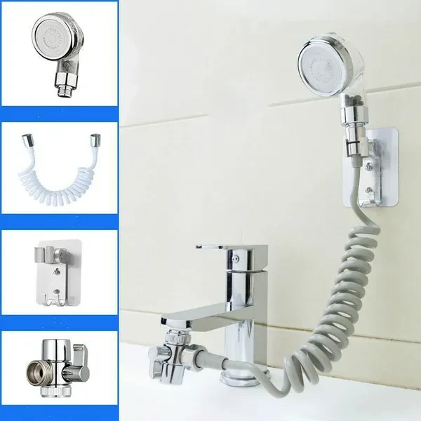 Feature: Versatility: The sink hose spray kit comes with all the components needed for assembly. Connect to an existing bathroom or utility sink for a simple faucet sprayer solution. Faucet aerator with adapter: Female faucet aerator with adapter and connected to the hose of the hand shower. Handheld shower stand: Free stand is provided. The toilet tank mounting bracket can be separated from the wall-mounted shower bracket. The stand fits almost all handheld devices. Long enough hose: This stylish shower stand can be adjusted between different angles. material: plastic Connection: G 1/2"" Package Contents: 1 sprayer + 1 white flexible hose + 1 faucet diverter + 1 shower head stand