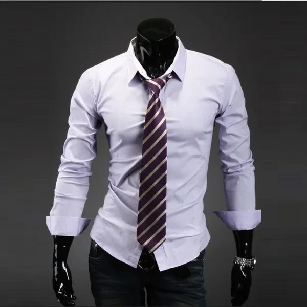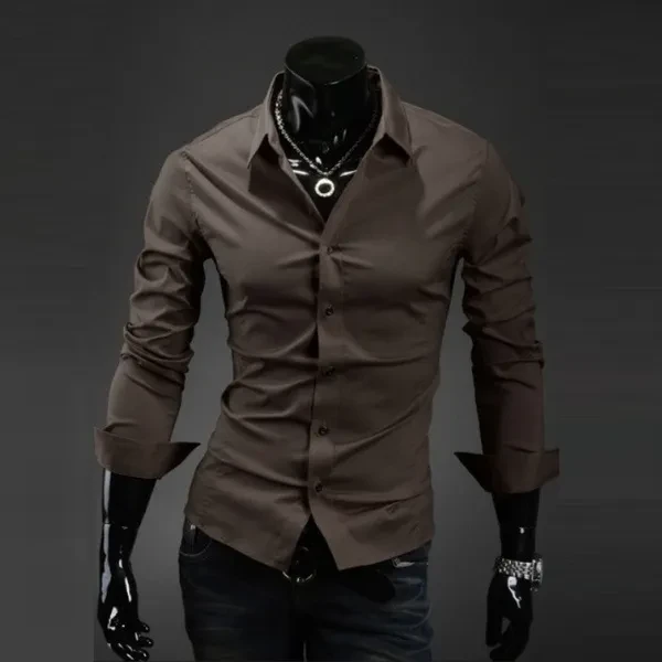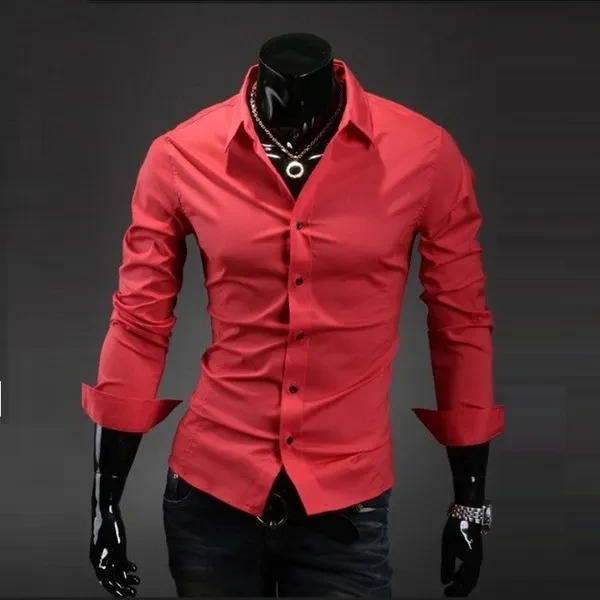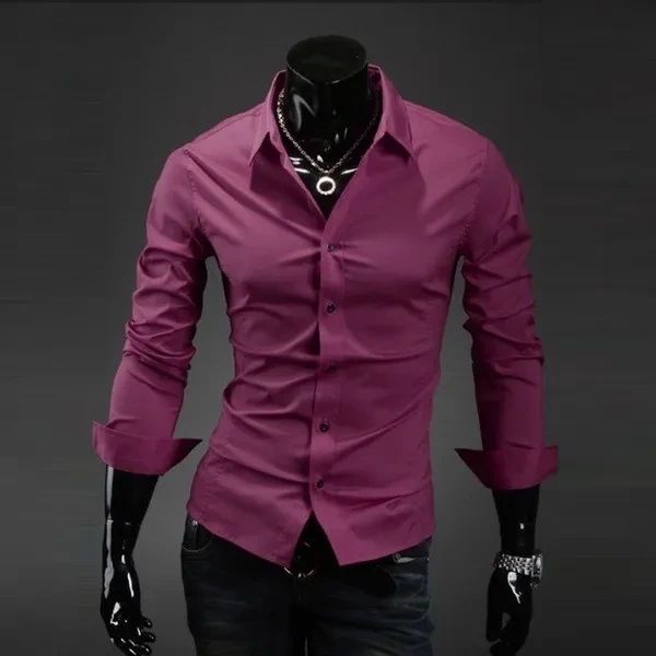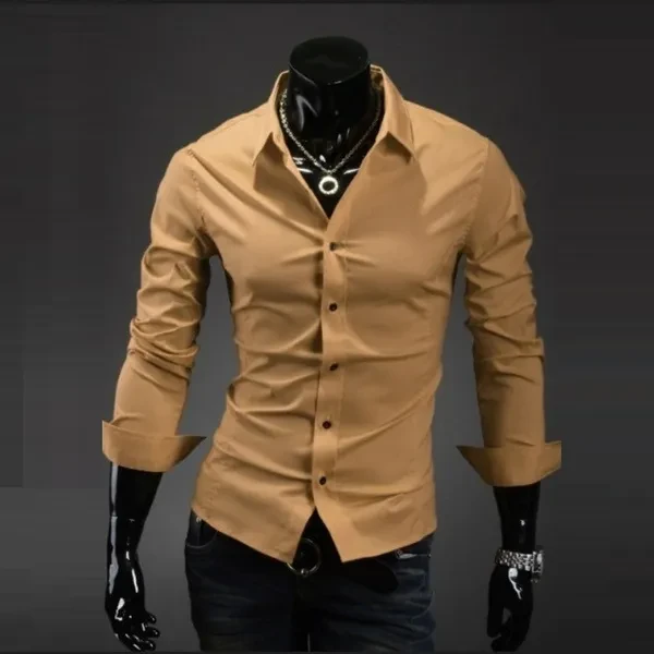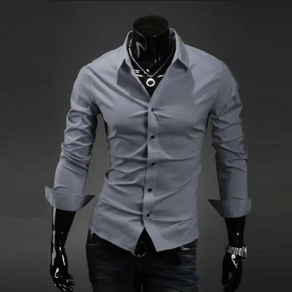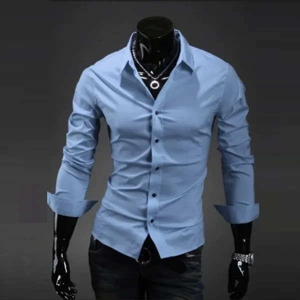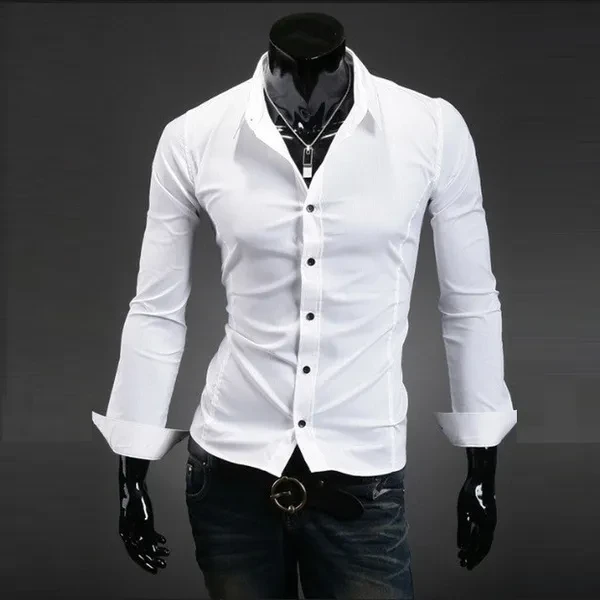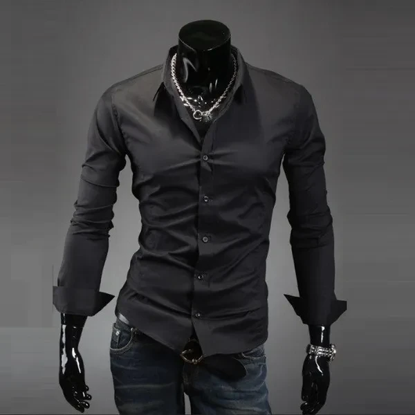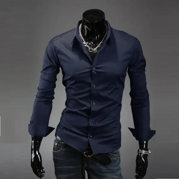Blouses for Men Slim Elegant Shirts High Quality Solid All-match