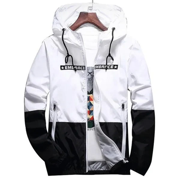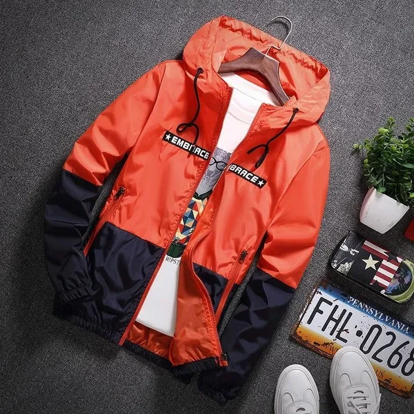 Bomber Hooded Patchwork Jacket Men Casual Slim Windbreaker Jacket Thin Male Outwear Zipper Coat Brand Hot Spring Autumn Clothing