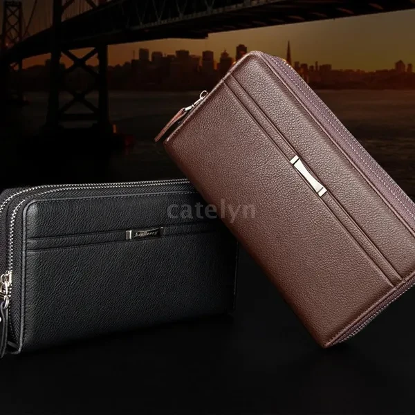 Business Men Luxury Wallets Long PU Leather Cell Phone Clutch Wallet Purse Hand Bag Top Zipper Large Wallet Card Holders