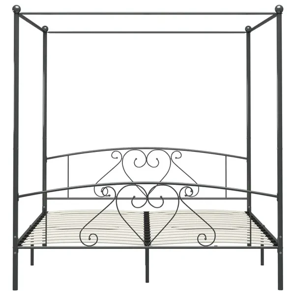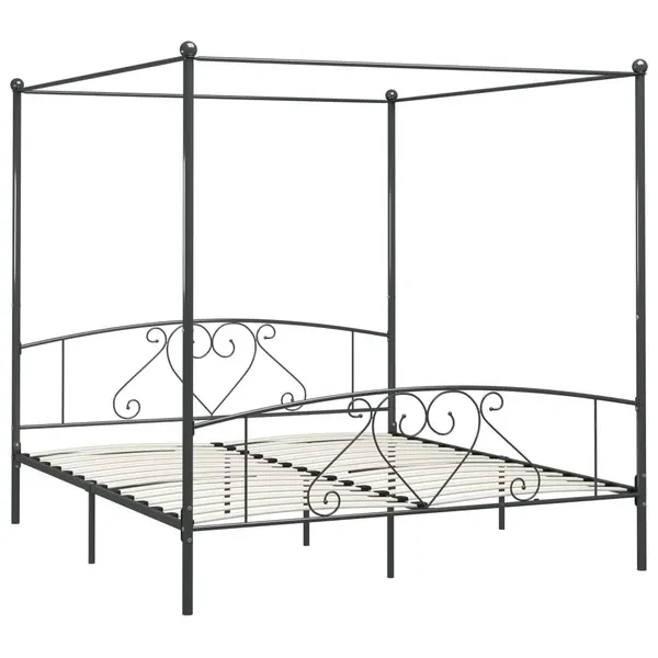 Canopy Bed Frame Grey Metal 200x200 cm Himmelbett-Gestell Hemelbedframe Cadre de lit à baldaquin