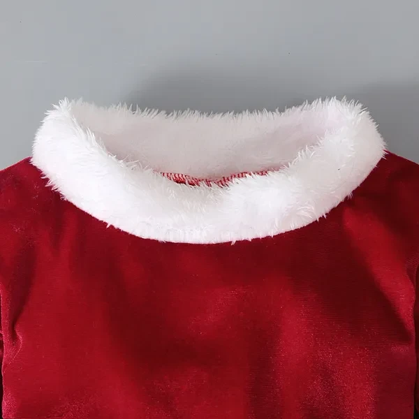 pattern: plain Color: red, green Length: trousers Main fabric ingredient content: 80 Suitable height: size 80, size 90, size 100, size 110, size 120, size 130 Suit type: pants suit Suitable age: middle and small children (3~8 years old, 100~140cm) Fabric name: polyester Closed style: pullover Main fabric composition: polyester fiber (polyester) Number of sets: three-piece Applicable gender: neutral/male and female Elements: Christmas Suitable season: winter, spring, autumn Sleeve length: long sleeve