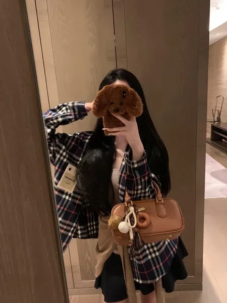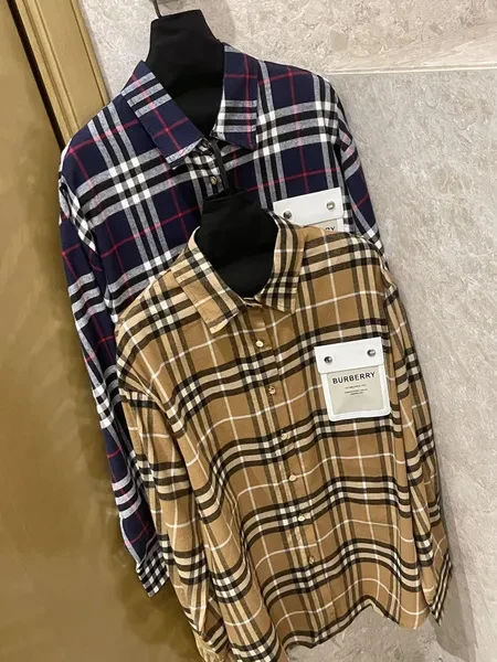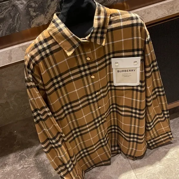 ---Burbe ^ ry limited edition checked pattern long-sleeved shirt, a must for temperament Classic models that can be worn all year round~ Easy to get lazy on the street style Plaid elements age reduction playfulness is also very daily Easy to match, effortless fashion sense Size: F F: Bust 108 Length 73