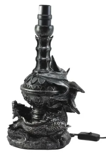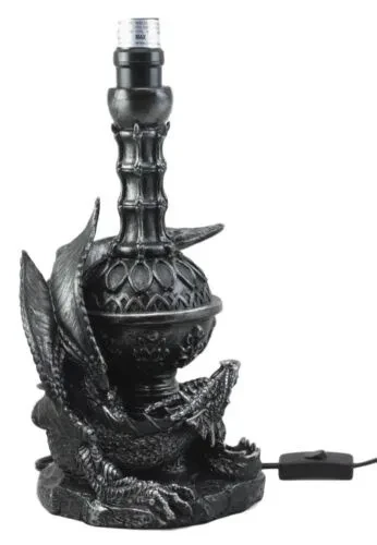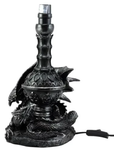 • This Awakening Dragon lamp comes with the shade as pictured. Made of polyresin, hand painted and polished, the quality finish is superb! Use only Type A light bulb (not included), Max 40 watt. Approx. 4 1/2 ft. UL Approved electric cord with on/off switch.• The overall lamp measures about 20" tall. The figurine part measures 14.25"H from the base to the end of the metal post. The lamp figurine body is 8.5" wide and 5" deep. The shade is 13" in diameter and 8.25" tall approximately.• Because all our products are individually hand painted work of art, the color tone may vary from the pictures.• Decorate your home with this Gothic Awakening Dragon table lamp!!! It is designed with a gothic look and it depicts a single dragon guardian awakening from slumber.