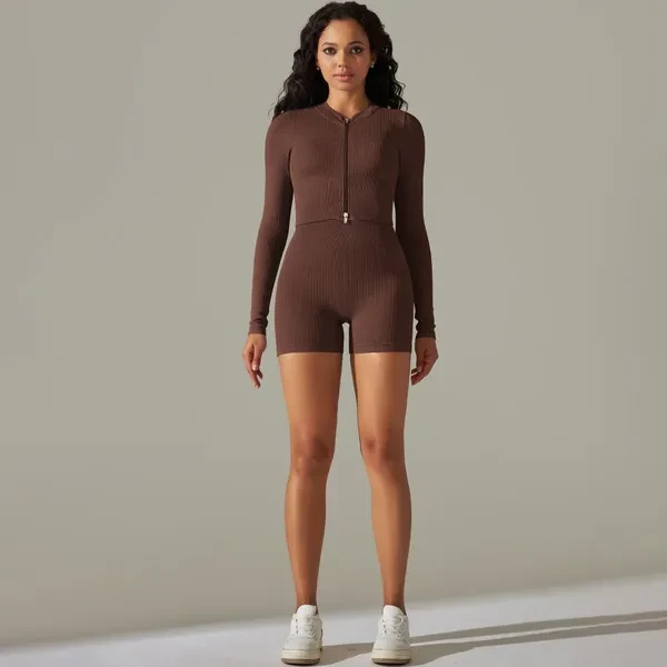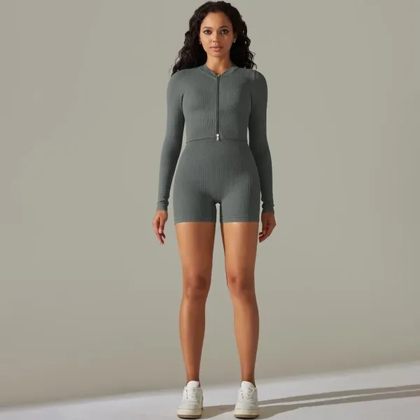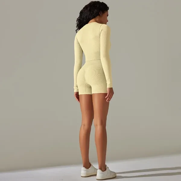 Cross-Border European And American Seamless Solid Color Thread Long-Sleeve Zipper T-Shirt Yoga Clothes Suit Sports Running Workout Outfit Suit Women
