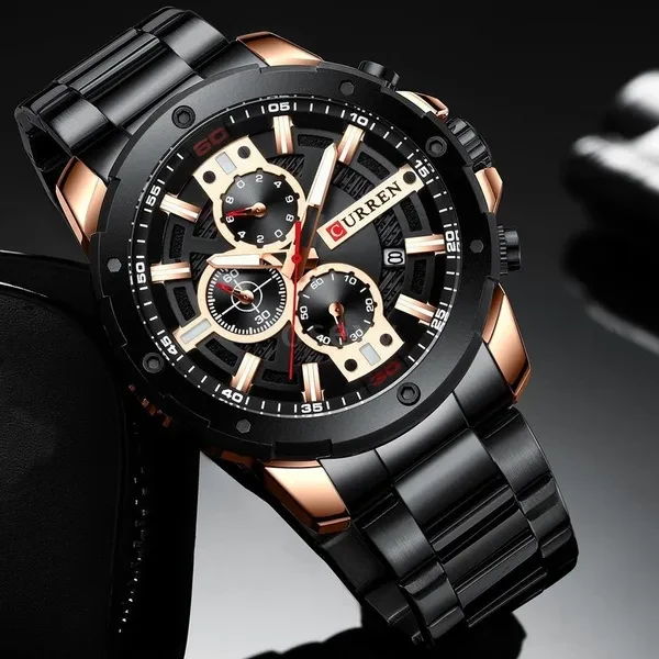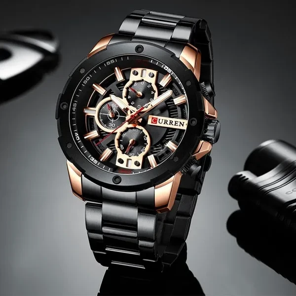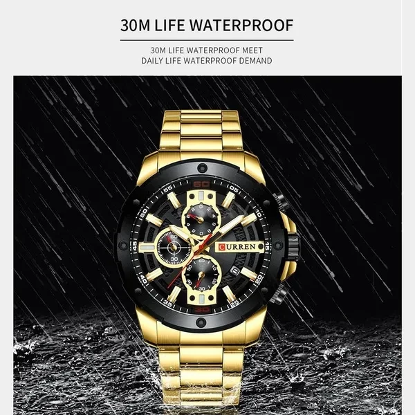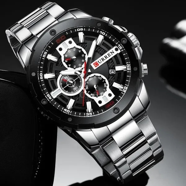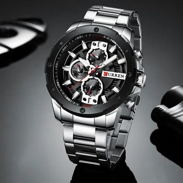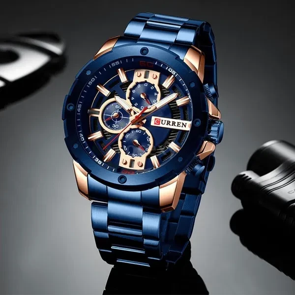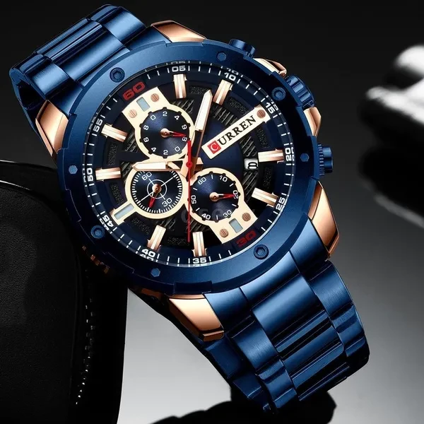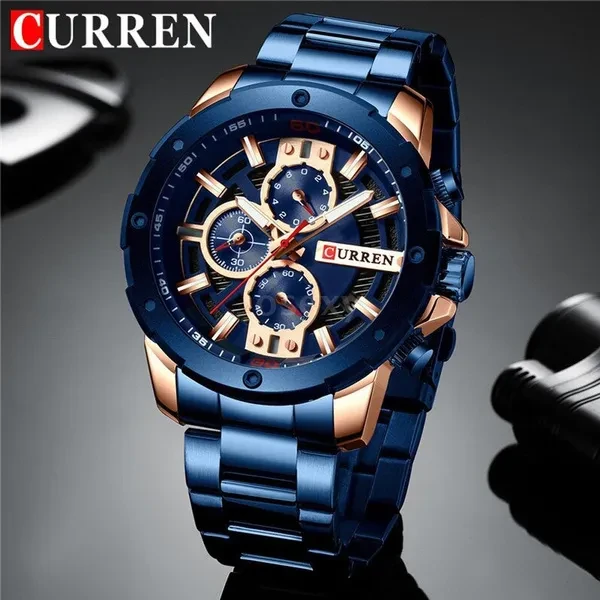 CURREN Men Quartz Watch Blue Luxury Stainless Steel Band Fashion Multifunction Wristwatch Chronograph Calendar Date Watches