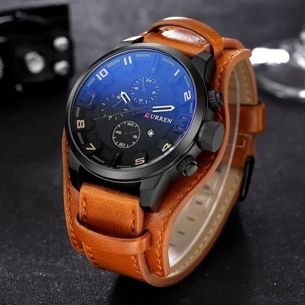 CURREN Reloj Hombre montre homme Men's Luxury Brand Army Military Watches Men Clock Leather Strap Waterproof Analog Quartz Watches