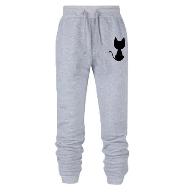 Cute Cat Printed Women Sweatpants Cotton Long Pants Jogger Trousers Womens Casual Sports Fitness Solid Jogging Pants Women Sweat Pants